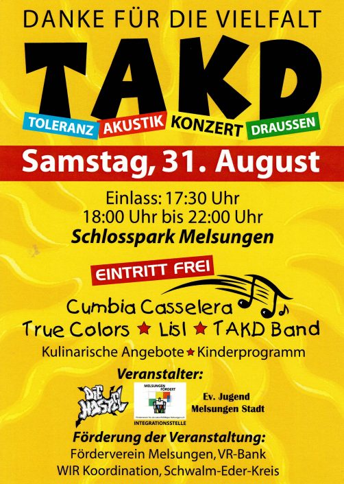 Am Samstag, den 31. August 2024 findet von 18:00 Uhr bis 22:00 Uhr im Schlosspark Melsungen ein abwechslungsreiches Konzert mit Kinderprogramm statt.